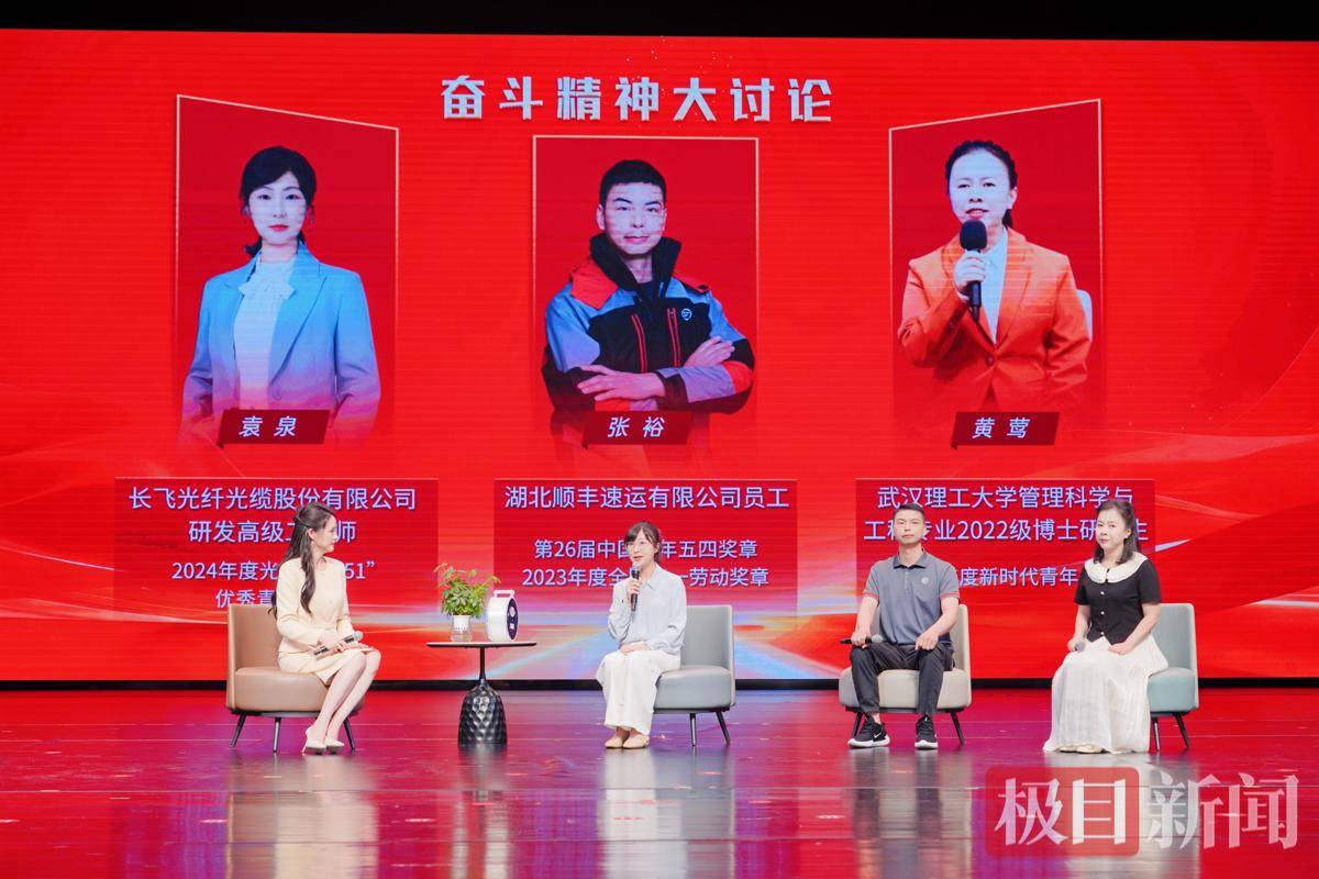 活動現場,一場“奮斗精神大討論”將氣氛推向高潮。長飛光纖光纜股份有限公司研發高級工程師袁泉認為,奮斗是“堅定的選擇”,研發過程中可能試了100次,前面99次都失敗,但只要方向正確,就必須堅持下去。湖北順豐速運有限公司員工張裕徒手爬樓、沖向火場救人,面對朋友勸他注冊抖音賬號謀求利益,他婉拒道:“如果我現在去注冊抖音賬號,去謀求其他利益,那我的初心就變味了?!蔽錆h理工大學管理科學與工程專業2022級博士生黃鶯,兩歲時因病雙目失明,卻憑借頑強毅力,成為寧夏首位參加普通高考的盲人學生,并考取博士研究生。對于“躺平”,她有自己的理解:“人可以給自己留一些‘躺平’的時間,關鍵在于堅守心里的底線,知道不要什么,這能推著自己往前走。”